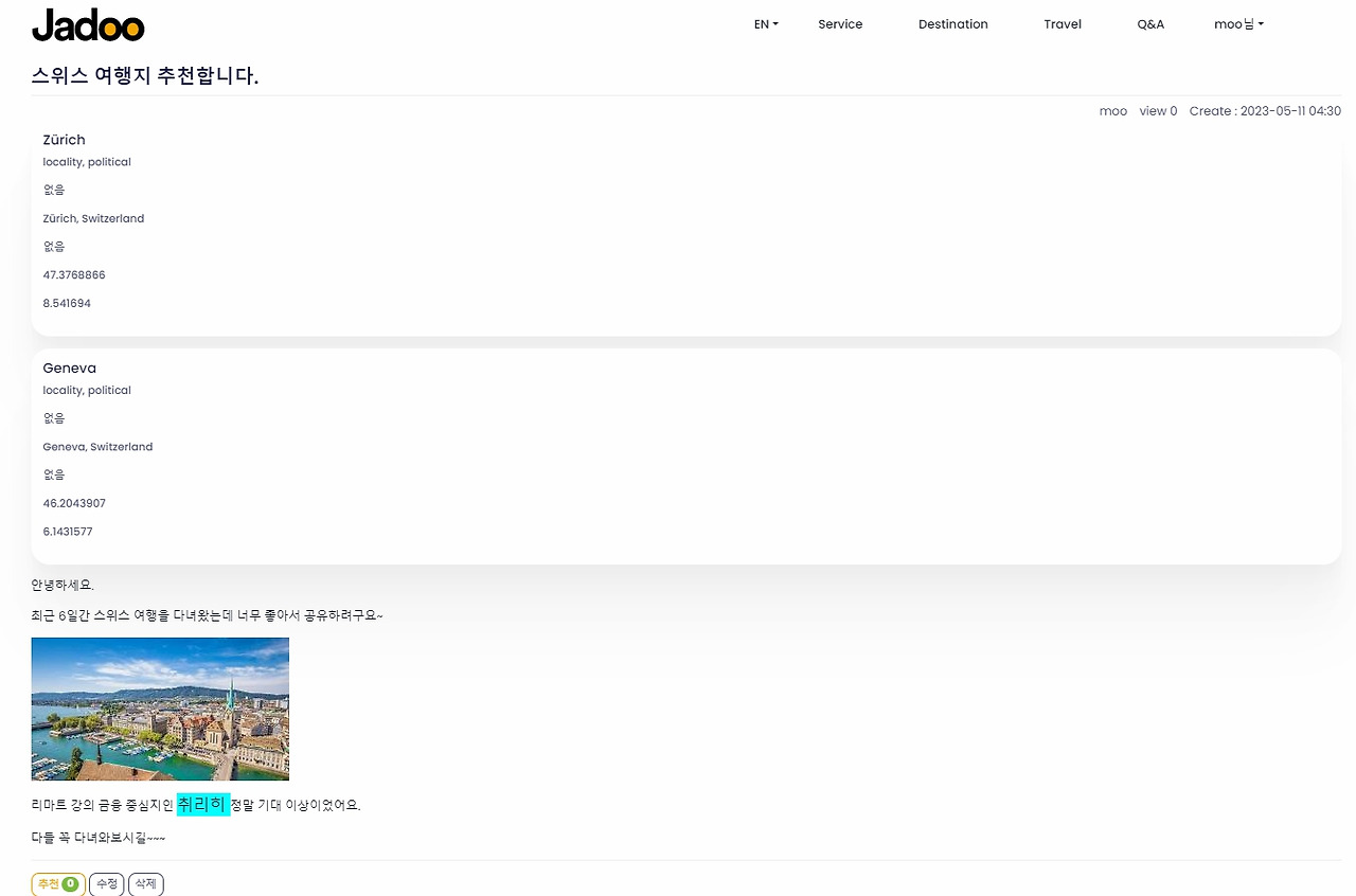 Google Maps API를 사용하여 사용자들의 여행지 정보를 공유하는 블로그
